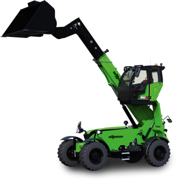 テレハンドリングマシーンの高リーチおよび低い回転半径を、ホイールローダーの丈夫な強度および頑丈な構造と混合して一つにしました。